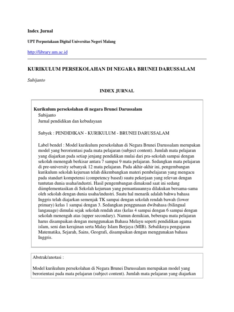 Kurikulum Di Brunei Darussalam : Pwqpyzmqnqq0mm. Aslanmarani88@yahoo.com article info article history: Education policy for brunei dalam fail rasmi kerajaan Kemajuan pendidikan sebuah negara akan sangat mempengaruhi pola pikir seseorang dalam berinteraksi. Sedangkan di brunei darussalam menggunakan konsep melayu islam beraja ( mib ) dalam kurikulum sekolahnya. Salah satu target yang akan dicapai di bidang pendidikan adalah meningkatkan angka lulusan pendidikan sekolah tinggi di brunei darussalam.